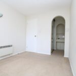 The entrance hall provides room for coats and shoes with an internal window and glazed door connecting the reception room. The lounge/diner is a good size and features a focal arched alcove, a window onto the communal grounds provides a pleasant outlook. The kitchen is fitted in a range of wood effect eye and base level units with complementing worktops and tiling. The main bedroom benefits from a useful area dressing with fitted wardrobe and a vanity unit. There is a further single bedroom with fitted wardrobe. The bathroom is fitted in a white suite with shower over bath and has a cupboard housing the immersion tank. The property also benefits from double glazing throughout and has electric heating.