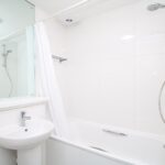 This spacious apartment is situated on the first floor. The L-shaped entrance hall features a window allowing natural light and provides plenty of room for a small dresser and space for shoes and coats. A convenient storage cupboard together with an airing cupboard is also located in the entrance hall. The living room is a great size with plenty of room for a living and dining area. The kitchen is one of the larger designs within the development and is refitted in a range of cream matt effect base and eye level units, with complementing dark grey worktops. The size of the kitchen allows all appliances to be accommodated, including a tumble/dryer and slimline dishwasher. Good sized double bedroom which benefits from fitted wardrobes. The bathroom is fitted in a white suite and features a pumped shower over bath and large steam free mirror.