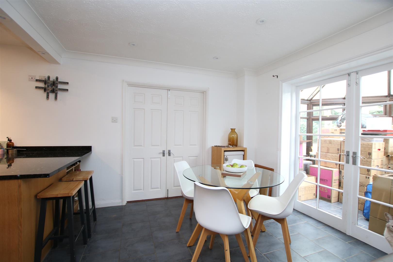 Lines & James are thrilled to bring to the market this wonderful four bedroom detached family home, situated on the sought-after North side part of town. The property is presented to a good standard throughout offering generous accommodation that comprises: Entrance hall, study, cloakroom, large living room featuring a brick built open fire, sliding doors to the garden and double doors to the kitchen/diner. The large open plan kitchen/diner has further double doors that open into the conservatory, this room provides a perfect family space or to entertain guests. Finished with modern high gloss glitter effect worktops, contrasting wood finished units and central island, the kitchen includes: American style fridge freezer, five burner Rangemaster, integrated microwave and dishwasher. A separate utility room houses the washing machine, tumble dryer and additional freezer.